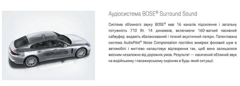 А вот описание аудиосистемы Bose в штатной комплектации Порше: