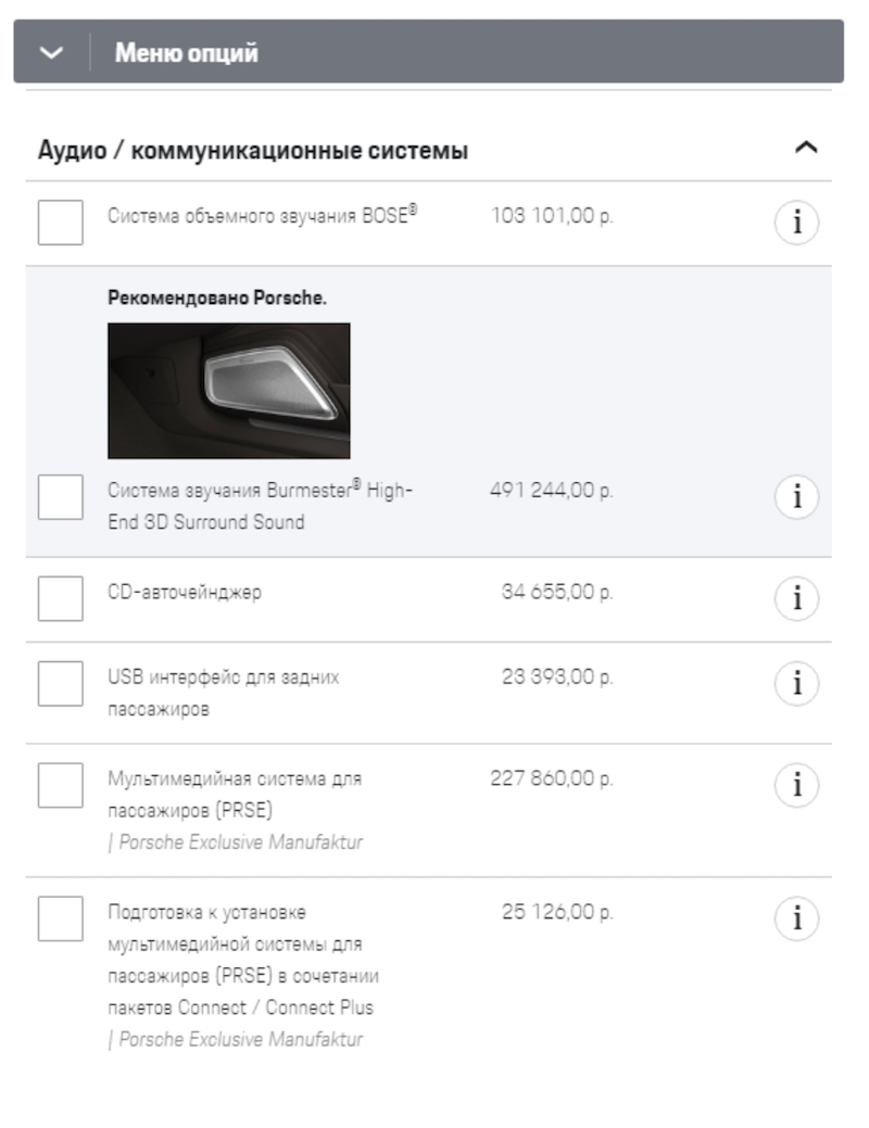 Добавьте сюда еще стоимость инсталляции, проводов и аксессуаров. Но по уровню звучания вышеописанная система будет сопоставима с дооснащением до системы Burmeister. А теперь давайте глянем, сколько будет стоить такая заводская система и сравним со стоимостью системы на Hertz: