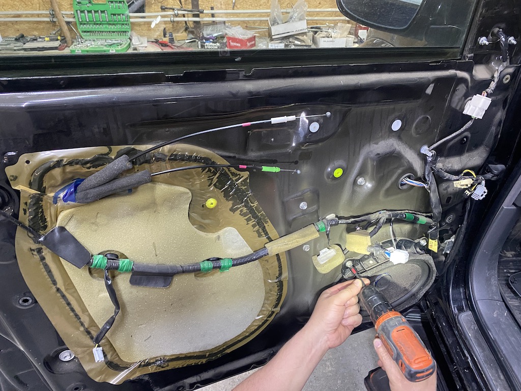 And these are the front doors of a 2008 Lexus GX470 after audio preparation and installation of Focal midbass speakers: