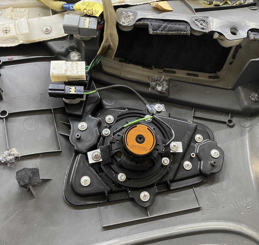 To mount the midrange speakers, we had to make custom mounts to ensure that the new speakers would work for a long time and reliably.