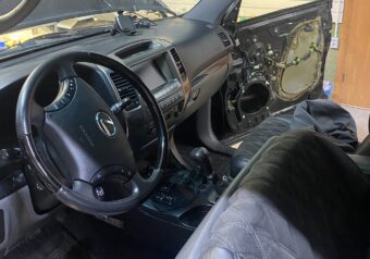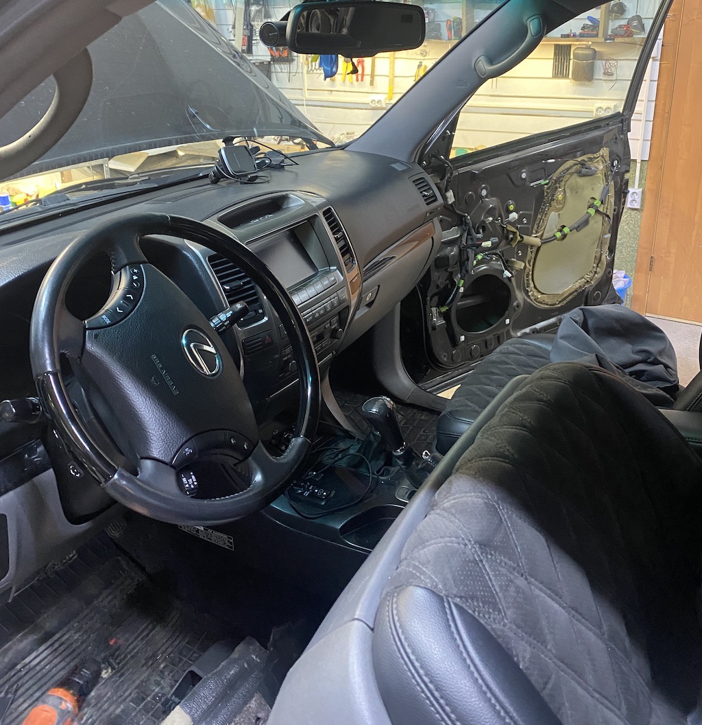 What acoustics did we recommend to the owner of Lexus GX470? As front acoustics, we chose midbass and tweeters Focal, midrange speakers Ground Zero. This is how the front doors looked before our intervention: