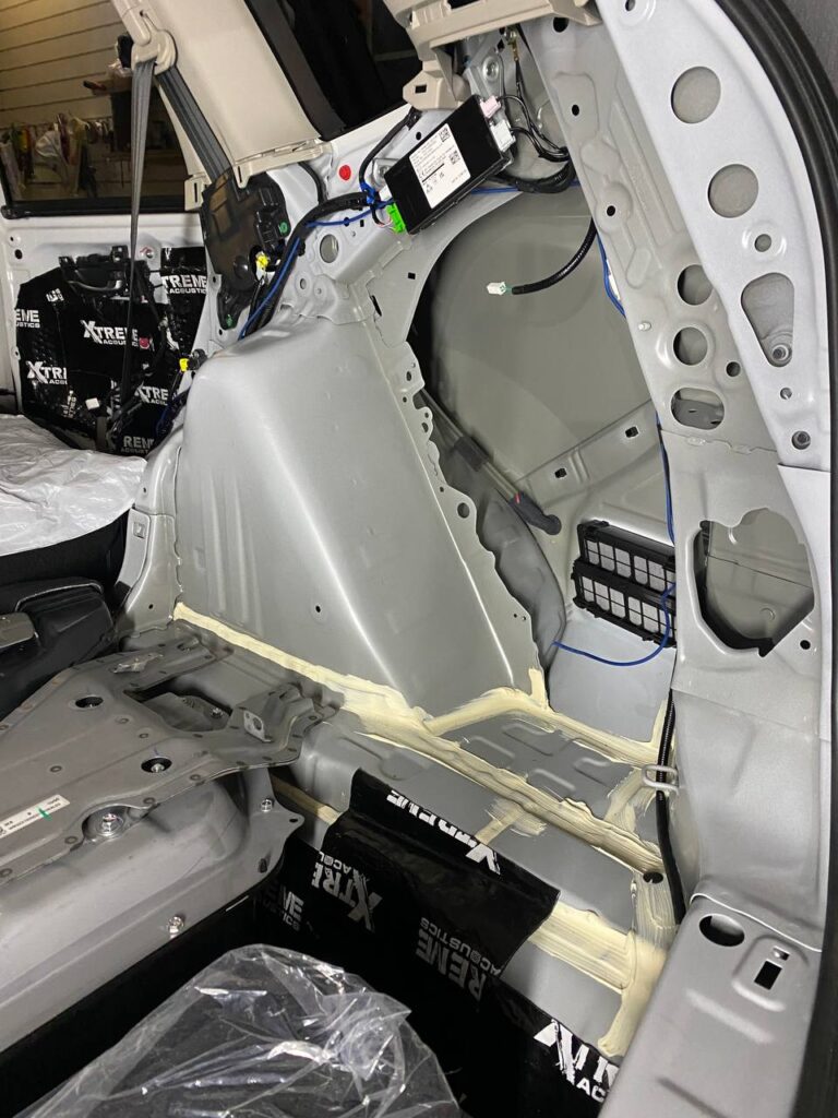 Не забули і про аудіопідготовку дверей. Детальніше про те, як і якими матеріалами ми зробили часткову шумоізоляцію Honda CR-V 2024, ви можете прочитати окремо. Але одне фото ми залишимо тут як зразок того, як це виглядає.